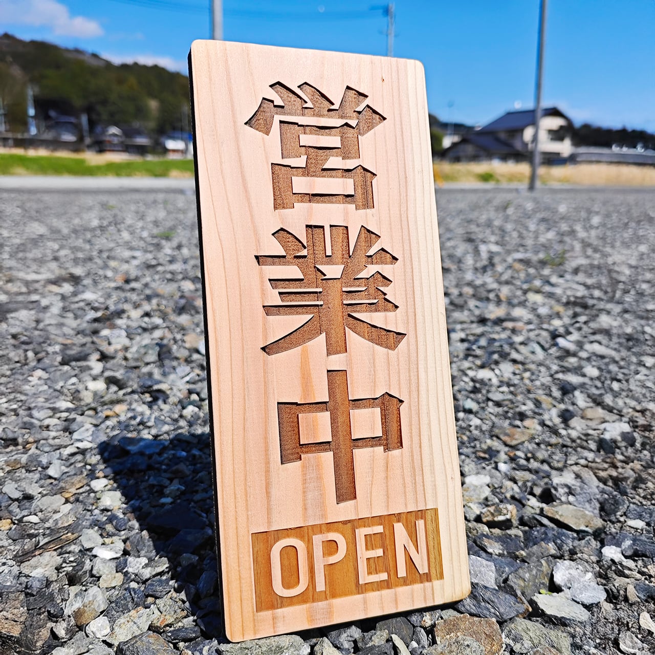 この看板は、質の高い杉材を使用しており、あたたかみのある風合いが特長です。表面には「営業中」の文字、裏面には「準備中」と、必要に応じて表記を簡単に切り替えることができます。