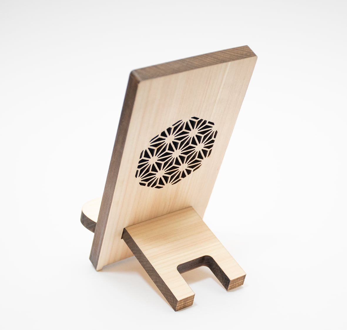 このスマホスタンドは、日本の伝統的なヒノキを使用した上質なデザインです。手に持たずにスマートフォンを安定させることで、長時間の使用でも疲れにくいのが特徴です。特に六角形の麻の葉のモチーフが、シンプルでありながらも和の美しさを演出し、あなたのデスクやリビングを華やかに飾ります!