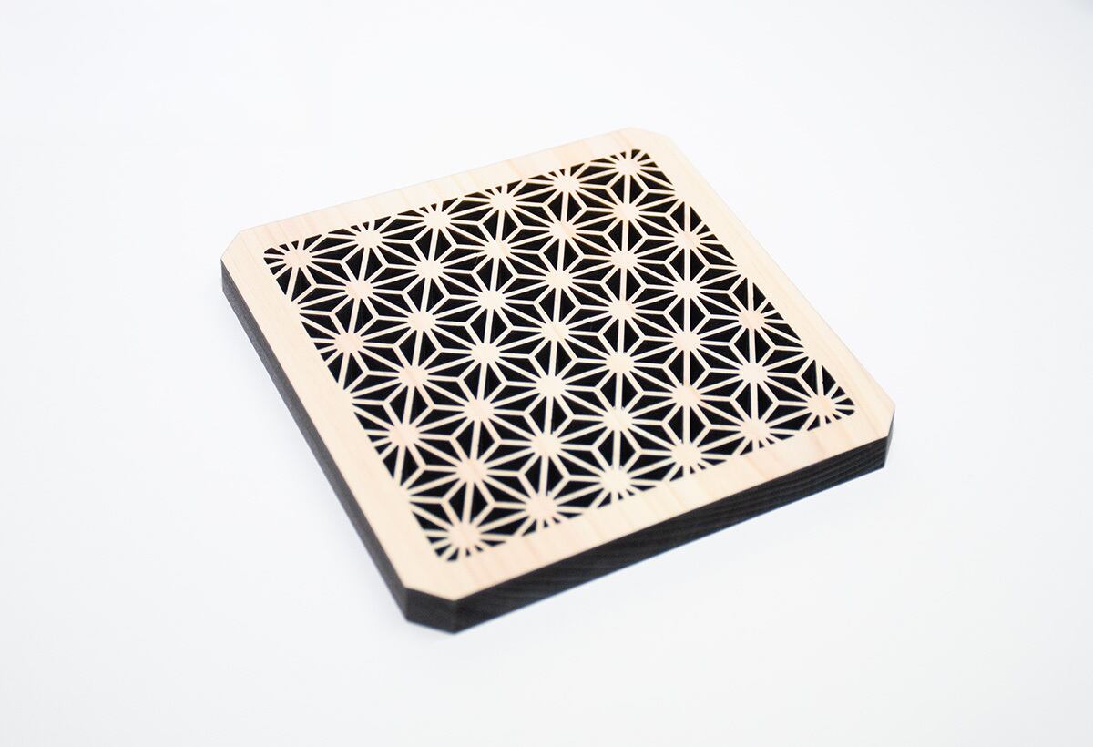 ヒノキのコースター【麻の葉(あさのは)模様】角形(10cm)が新登場!