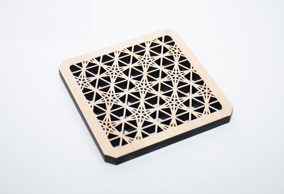 ヒノキのコースター【竜胆(りんどう)模様】角形(10cm)が新登場!