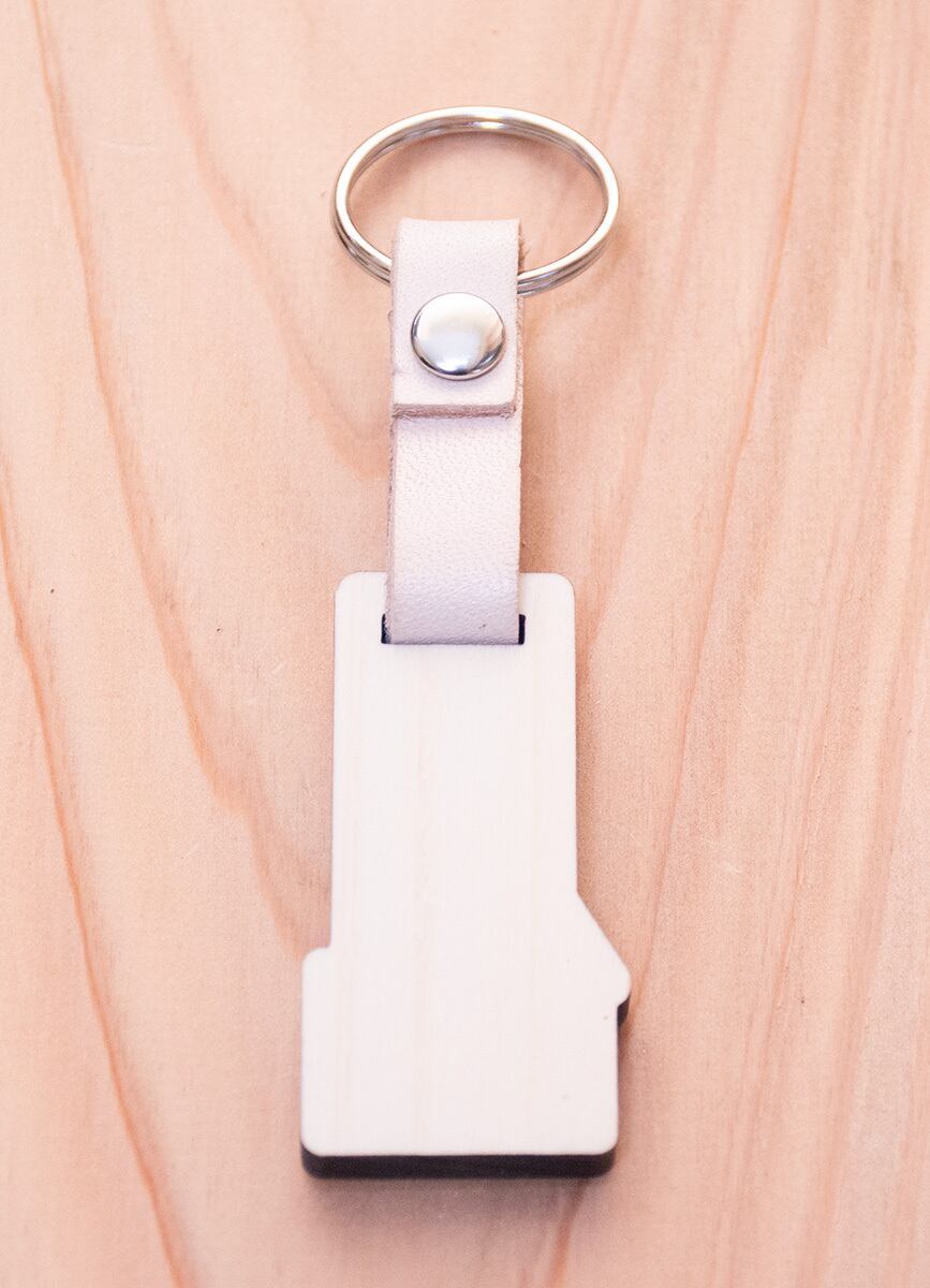 サイズ:ヒノキ部分 約5cm x 2.5cm、厚さ約0.6cm 革部分 約1cm x 約4㎝ リング部分 直径約25mm
