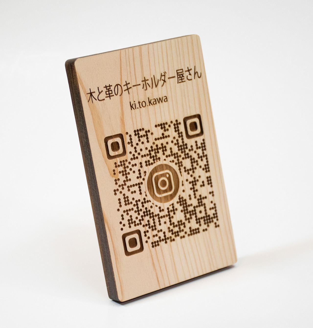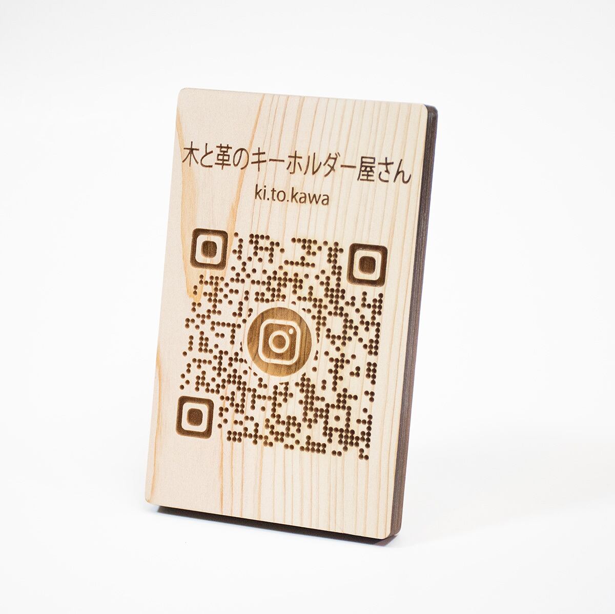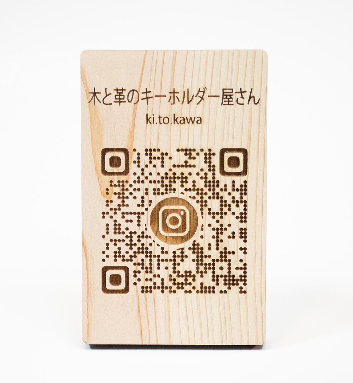 このユニークなアイテムは、スマートフォンからInstagramや店舗のウェブサイトにアクセスするためのQRコードを、心地よい香りのヒノキにレーザー彫刻した卓上ポップです。そのデザインはシンプルでありながら、あなたの店舗やブランドを際立たせる魅力を持っています。ヒノキの温かな風合いが、どんな空間にも自然に溶け込みます。