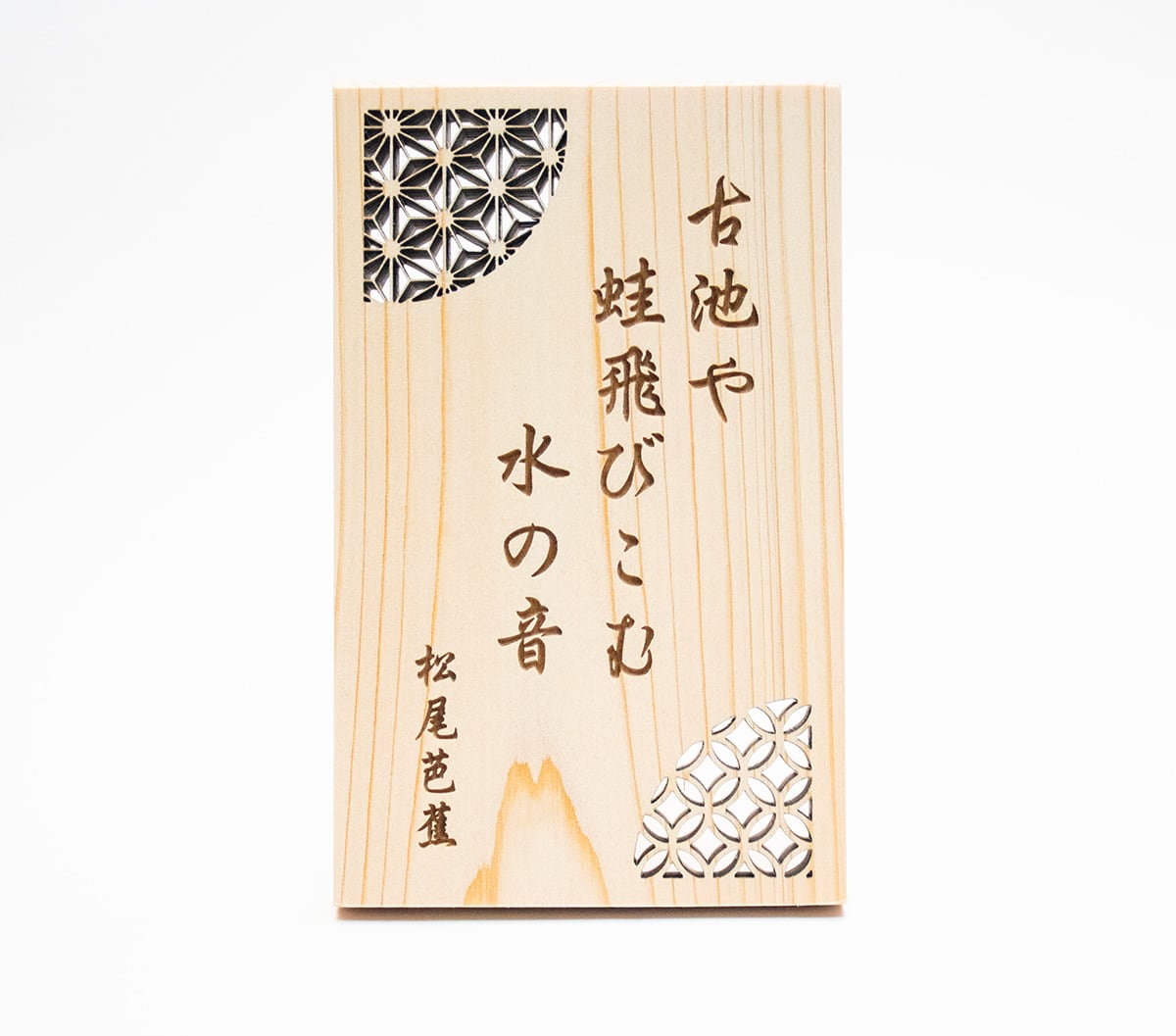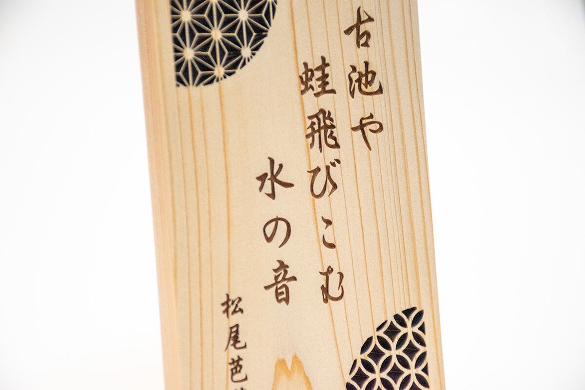 木に彫ることで、自然な風合いを持ち合わせたこだわりの作品となっています。風景や心情を表現する俳句を刻むことで、あなただけのオリジナリティあふれるアートを楽しむことができます。