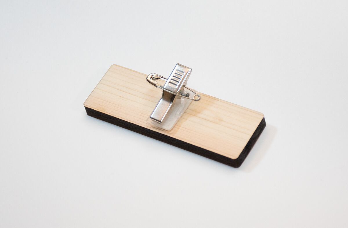 裏面には安全ピンとクリップの両方を装備。
